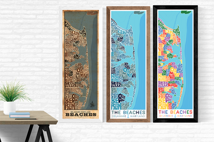 Delaware and Maryland Beaches Type Map – LOST DOG Art & Frame